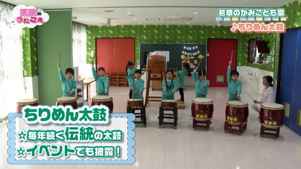 そして今回は、若草のがみこども園の伝統である「ちりめん太鼓」を披露してくれましたよ♪🪘🥁
